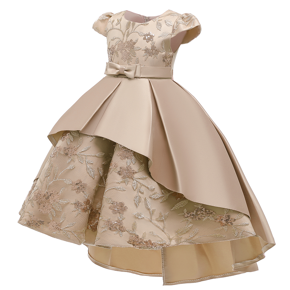 Princess Party Dress with a bow is a dress for any occasion. The embroidery on the chest and the layers give it an elegant look. This is an easy-care dress for wedding ceremonies.